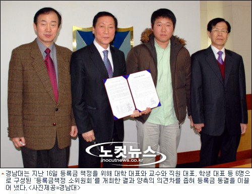 경남대는 지난 16일 등록금 책정을 위해 대학 대표와 교수와 직원 대표, 학생 대표 등 6명으로 구성된 '등록금책정 소위원회'를 개최한 결과 양측의 의견차를 좁혀 등록금 동결을 이끌어 냈다.