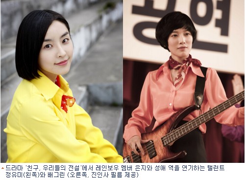 드라마 ‘친구’에서는 진숙(왕지혜)의 단짝 친구이자 여성 7인조 밴드 레인보우의 베이스를 연주하는 성성애 역을 연기한다. 털털하면서도 보이시한 깜찍함으로 다소 무거운 스토리에 활력을 불어넣고 있다.