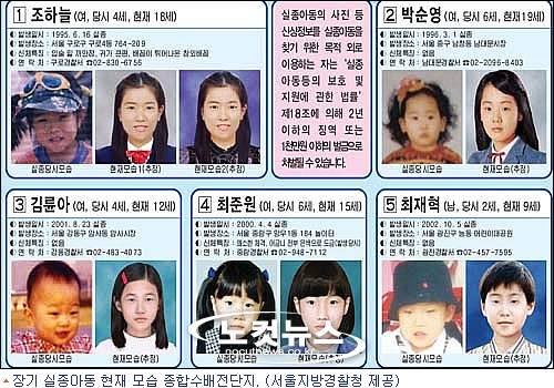 이같은 문제제기에 서울지방경찰청 폭력계에서는 실종 아동 7명을 시범적으로 선정해 새로운 전단지 제작에 나섰다.