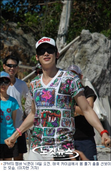 50여 명의 국내팬과 3박5일간 태국으로 여행을 떠난 닉쿤은 첫날 일정인 14일 오전, 푸껫의 남단 코시레에서 스피드보트로 약 20분 거리에 위치해 있는 카이섬((Ko Khai Nok)에서 팬과 피구와 모래 옮기기 게임 등을 함께하며 땀을 흘렸다.