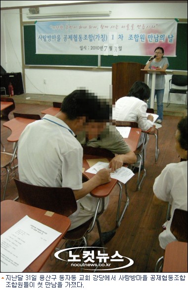 이런 가운데 지난달 31일 조합원들이 동자동의 한 교회 강당에 모여 서로 인사하는 첫 만남을 가졌다.