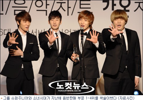 그룹 슈퍼주니어와 소녀시대가 지난해 음반판매 부문 1~4위를 싹쓸이했다.