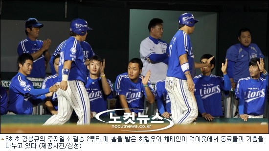삼성은 0-2로 뒤진 3회초 대거 5점을 뽑아 전세를 뒤집었다. 리그 정상급 4번타자로 성장해 우승에 기여한 최형우의 동점 2타점 2루타에 이어 베테랑 강봉규가 만루 찬스에서 주자일소 2루타를 때려 결승점을 뽑았다.