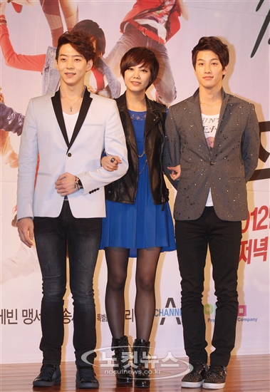 채널A 월화드라마 'K팝 최강 서바이벌'(연출 이정표, 이정민, 극본 문선희)의 제작발표회가 13일 오전 서울 여의도동 63빌딩에서 열린 가운데 배우 박유환, 고은아, 곽용환이 포토타임을 갖고 있다. 'K팝 최강 서바이벌'은 한류 최고 아이돌그룹을 중심으로 연예계 에피소드를 다룬 청춘드라마로 오는 19일 첫 방송된다.