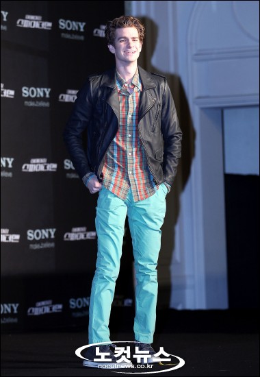할리우드 배우 앤드류 가필드가 13일 오전 서울 역삼동 리츠칼튼 호텔에서 열린 영화 '어메이징 스파이더맨' 내한 기자회견에 참석해 포토타임을 갖고 있다.