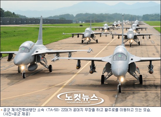 22대가 27일 경북 예천에 있는 공군 제16전투비행단 활주로에 일제히 그 위용을 드러냈다.