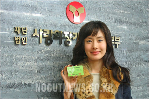사랑의 장기기증 운동본부를 찾아 장기기증에 서약한 탤런트 김지수. (사랑의 장기기증 운동본부 제공/노컷뉴스)