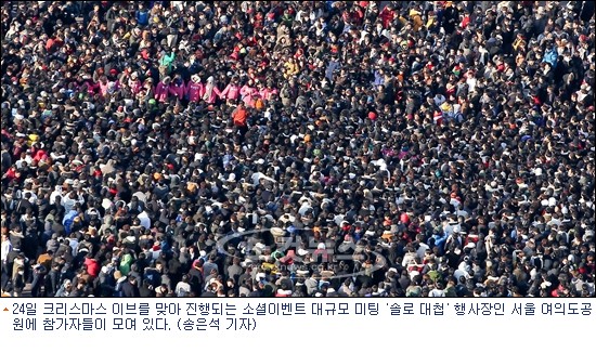 24일 여의도 공원에 모인 수천명의 솔로들 중에 얼마나 되는 숫자가 그토록 염원하던 '솔로탈출'의 꿈을 이뤘을까.