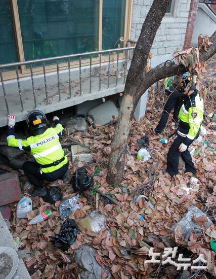 종암경찰서 경찰들이 27일 오후 서울 성북구 장위3재개발구역에서 제2의 김길태 사건을 막기 위해 범죄취약지역인 공·폐가를 수색하고 있다.