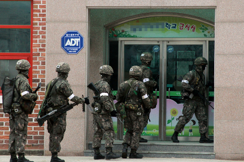 초등학교서 탈영병 수색하는 육군