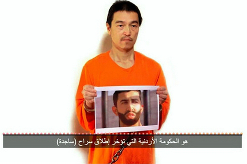 이슬람 수니파 극단주의 무장세력 ‘이슬람국가’(IS)가 “24시간 내 사지다 알리샤위를 석방하지 않으면 일본인과 요르단인 인질을 모두 살해하겠다”고 협박했다.