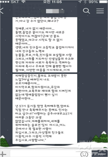 어머니는 이어 “졸업은 끝이기도 하지만 새로운 시작이기도 하잖아? 근데 넌 끝도 못 맺었고 더구나 시작도 할 수 없기 때문이야”라며 '갈 수 없는 졸업식'에 대한 안타까움을 드러내기도 했다.