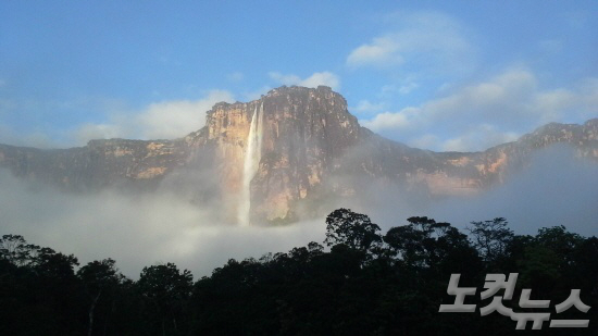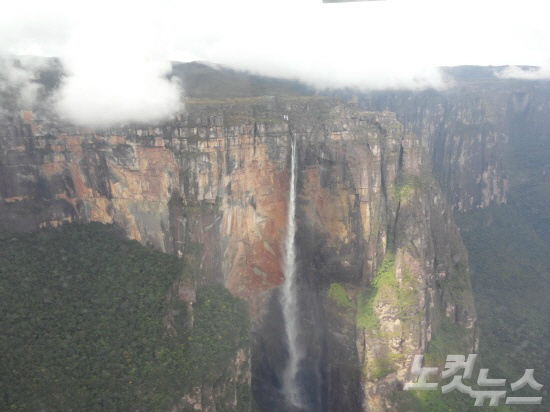 구름을 뚫고 물이 세차게 떨어지는 듯한 장관을 연출하는 베네수엘라의 앙헬 폭포(Angel Falls).