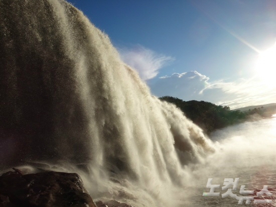 앙헬 폭포를 아래서 올려다보면 엄청난 물살로 마치 내 몸으로 쏟아지는 듯한 짜릿한 기분을 받게 된다. 절벽이 너무 높은 나머지 폭포수가 지면에 닿기 전에 하얗게 수증기로 증발하여 무지개를 생성하는데 그 모습이 신비로운 느낌까지 든다.