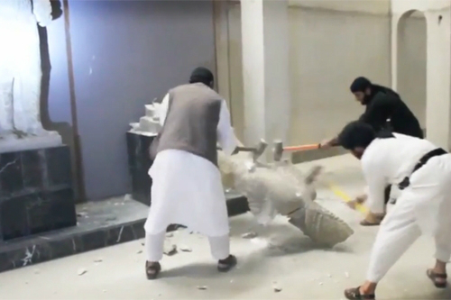 IS는 조각상 등이 이슬람교 신앙의 순수성을 해치고 변절자를 만든다는 명목하에 고대 유물들을 파괴하고 있다.