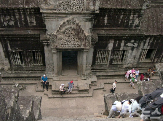 캄보디아 앙코르왓 중앙사원에서 내려오는길 (사진=트래블포커스 제공)