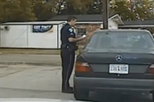 이후 슬레이저는 스콧의 차량으로 다가가 면허증과 차량등록증 등을 요구하며 몇 마디 주고받은 뒤 다시 순찰차로 돌아갔다.