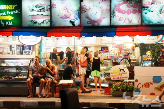 단, 코사무이에도 푸켓의 빠통 비치처럼 여행자들의 발길을 끌어 모으는 유명 비치 차웽이 있다. 빠통 비치에 비하면 규모는 작지만 코사무이에서 가장 번화한 비치로 맛집, 쇼핑몰, 펍 등이 작은 도로를 사이에 두고 밀집해 있다.