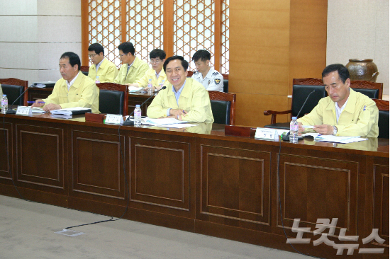 전국에 메르스 비상이 걸린 상황에서 김기현 울산시장이 7박9일간의 해외출장을 떠나기로 해 비난을 사고 있다. 사진은 18일 메르스 대응 관계기관 대책회의를 주재하고 있는 김기현 울산시장.