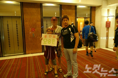 한국에서 아들이 전날 밤 직접 제작한 것이다. 오승환을 일본에서 직접 만날 기회다.