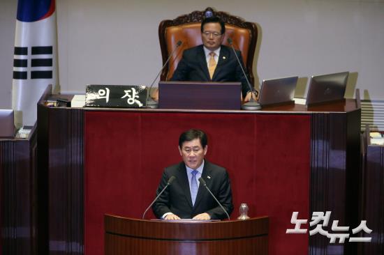 최경환 경제부총리 겸 기획재정부 장관이 24일 오후 서울 여의도 국회에서 열린 제335회 국회(임시회) 제2차 본회의에서 '2015년도 제1회 추가경정예산안' 등 관련 정부 측 의견을 밝히고 있다.