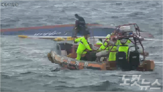 6일 오전 6시 25분쯤 전남 해남선적 9.77톤급 낚시어선 돌고래호가 전복된 채 발견됐다. 해경이 주변에서 수색작업을 벌이고 있다. (사진=제주해양경비안전본부 제공)