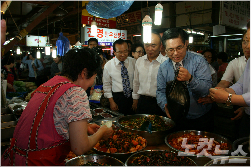 여의도순복음교회 이영훈 목사와 1,100여 명의 성도들은 반찬과 젓갈, 떡 등 다양한 물건을 구입하고 시식도 하며 시장 상인들을 격려했습니다.