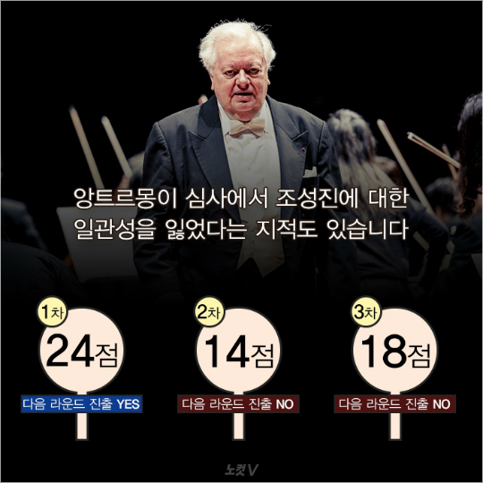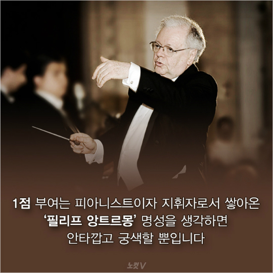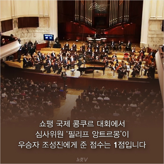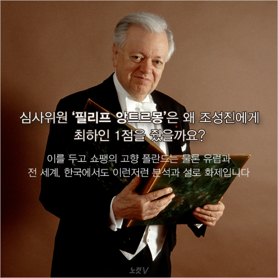 쇼팽 국제 콩쿠르 대회에서 심사위원 ‘필리프 앙트르몽’이 우승자 ‘조성진’에게 최하인 1점을 줘 논란이 일었죠.