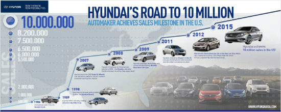 이후 1999년 200만대, 2002년 300만대, 2005년 400만대 판매를 달성하며 미국 시장에서 본격적으로 현대자동차를 알리기 시작했다.