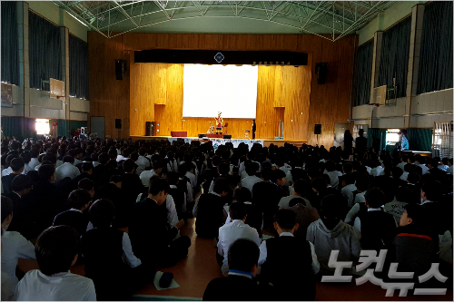 팔마중학교에서 2015 인터넷 중독 예방 마당극이 열리고 있다. (사진 = 전남CBS 김유리 아나운서)