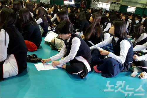 팔마중학교 학생들이 자신만의 실천약속을 적고 있다. (사진 = 전남CBS 김유리 아나운서)