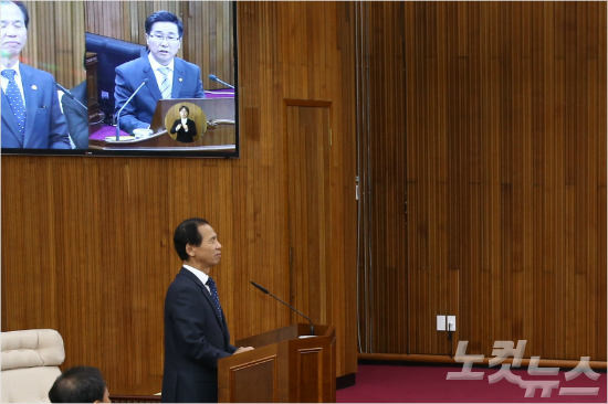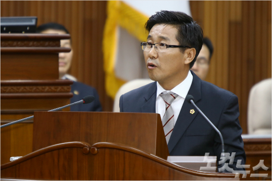 9일 강원도의회 도정질문에서 최문순 지사의 도정난맥상을 지적하고 있는 최성현 강원도의원.(사진제공=강원도의회)