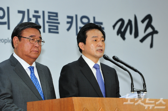 원 지사와 구 의장은 10일 함께 발표한 담화문을 통해 "지난 25년간 논의만 거듭하면서 표류하던 제주공항 인프라 확충 방안이 이제 명확한 결론을 내고 역사적 대사업의 첫발을 내디디게 됐다"고 밝혔다.