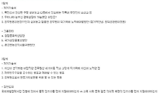 5급공채 응시생이 공무원관련 온라인 커뮤니티 게시판에 올려놓은 글 (사진=커뮤니티 캡처)