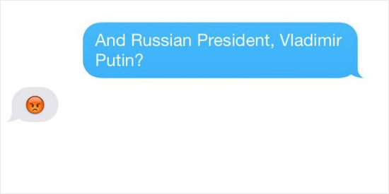 지난 2월 줄리 비숍 호주 외무장관이 '버즈피드'와 이모티콘 인터뷰를 가졌다. 비숍은 '푸틴 대통령을 이모티콘으로 표현해달라'는 질문에 이같이 답변했다. 사진=버즈피드 캡처