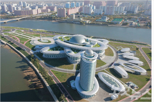 대동강하류 쑥선에 들어선 과학기술전당(사진=조선의 오늘)