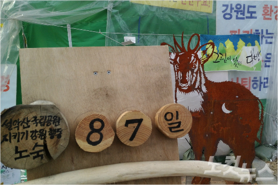 농성을 진행 중인 설악산국립공원지키기강원행동과 설악산국립공원지키기국민행동, 케이블카반대설악권주민대책위 등 관계자 30여명은 최근 설악산케이블카사업 환경영향갈등조정협의회를 재구성할 것과 환경영향평가 초안 반려를 촉구하고 나섰다.