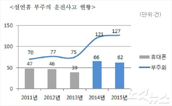 연휴에는 장거리 운전이 많은 만큼 운전 중 휴대전화를 사용하는 일이 잦고, 최근 스마트폰이 보편화되면서 이런 사고가 더 자주 발생하는 것이라고 연구소는 설명했다.