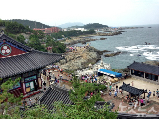 해안 절벽 위, 기이하게 지어진 부산 해동 용궁사. (사진=여행박사 제공)