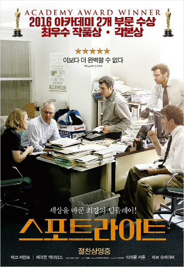 그런데도 '스포트라이트'는 지루하지 않았다. 짜임새 있는 구조와 전개, 진지한 증언, 가톨릭이라는 종교적 성역에 기죽지 않는 기자들의 열정이 맞물리면서 영화는 관객을 사로잡았다.