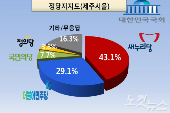 이번 2차 조사에서 제주시 을 선거구의 정당지지도는 새누리당이 43.1%였다. 지난 2월 1차조사 보다 2.5%P 하락했다. 그러나 더민주는 4.8%P 상승한 29.1%로 조사됐다.