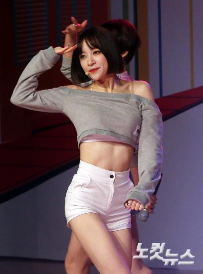 걸그룹 EXID(이엑스아이디)가 1일 오전 서울 청담동 일지아트홀에서 첫 정규앨범 '스트리트(street)' 발매 기념 쇼케이스를 갖고 타이틀곡 ‘L.I.E'를 선보이고 있다.
