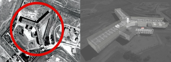 시리아 사이드나야 군사 교도소 지도(왼쪽)와 3D로 구성한 교도소(사진=국제사면위원회 제공)