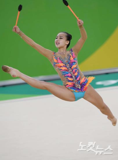 20일(현지시간) 리우데자네이루 바하 올림픽파크 체조경기장에서 열린 2016 리우올림픽 리듬체조 개인종합 결선에서 손연재가 연기를 펼치고 있다.
