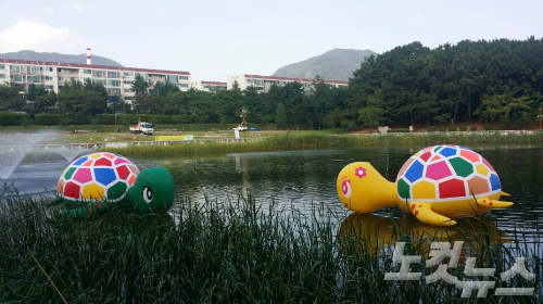 창원문화재단은 22일 "지난 18일부터 창원용지호수 공원에 거북 형상 대형벌룬인 '터돌이'와 '터순이'를 띄웠다"고 밝혔다.