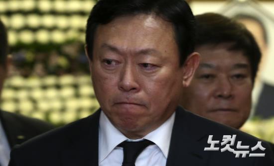 27일 서울 송파구 아산병원에 마련된 이인원 롯데그룹 부회장의 빈소에 신동빈 회장이 조의를 표한 후 발걸음을 옮기고 있다.