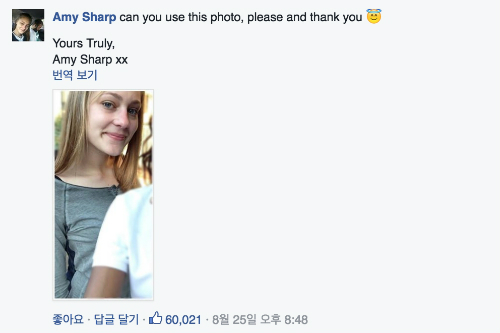 그러자 에이미 샤프는 이 기사에 자신의 다른 사진을 첨부하면서 "이 사진을 써 주세요, 감사해요. 에이미 샤프"라는 댓글을 달았다. "그럼 안녕히 계십시오(Yours Truly)"라는 편지 격식과 함께 이모티콘까지 쓴 이 댓글은 6만 건 이상의 '좋아요'를 기록했다.