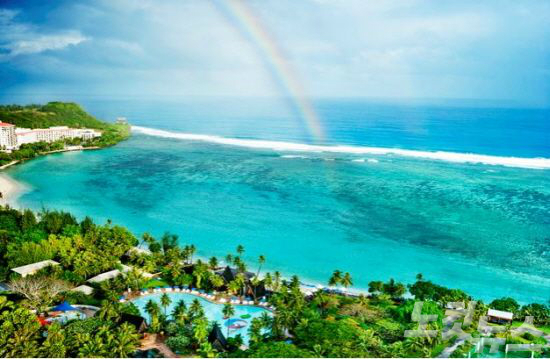 아름다운 해변에 자리한 괌 PIC 리조트 전경(사진=노랑풍선 제공)