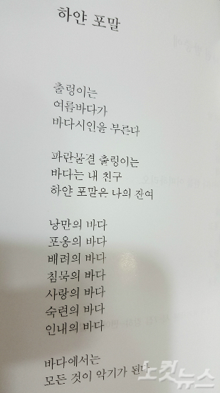 김승하 바다시인의 7집 시 ‘하얀 포말’(사진=고영호 기자) .