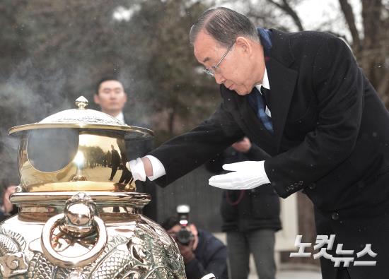 반기문 전 유엔사무총장이 13일 오전 서울 국립현충원을 방문해 박정희 전 대통령 묘역을 참배하고 있다.